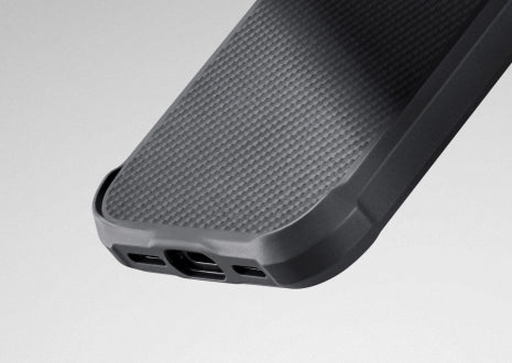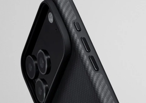 Задняя панель чехла PinButton выполнена из классического арамидного волокна — выглядит технологично, ощущается премиально, обеспечивает уверенный хват и при этом остаётся невероятно тонкой и лёгкой.